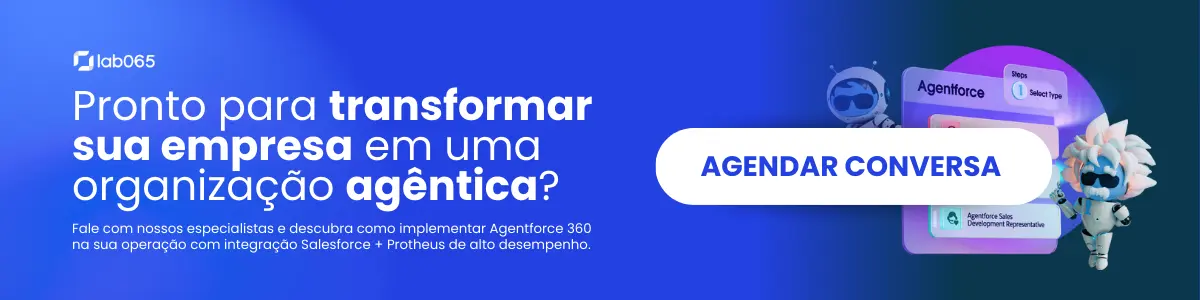 Ao longo deste conteúdo, você vai entender não apenas o que é o Agentforce 360, mas também por que essa mudança é irreversível, quais empresas já estão colhendo resultados extraordinários e como a Lab065 se posiciona como parceira estratégica para conectar sua empresa a essa nova era, especialmente na integração entre Salesforce e Protheus.
