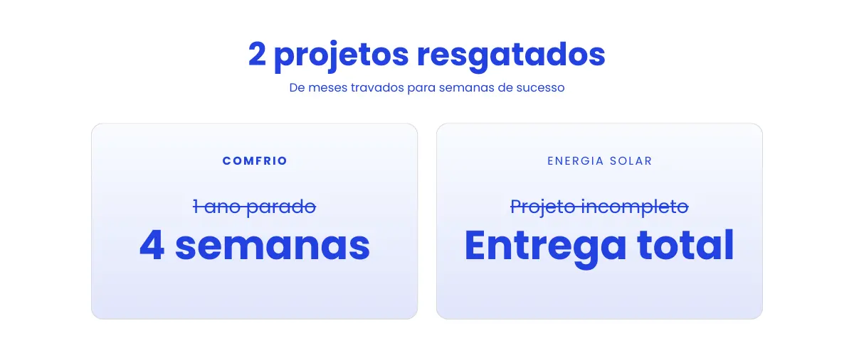 A boa notícia: projetos travados podem ser destravados. Neste artigo, mostramos dois casos reais de empresas que estavam nessa situação — e como viramos o jogo.